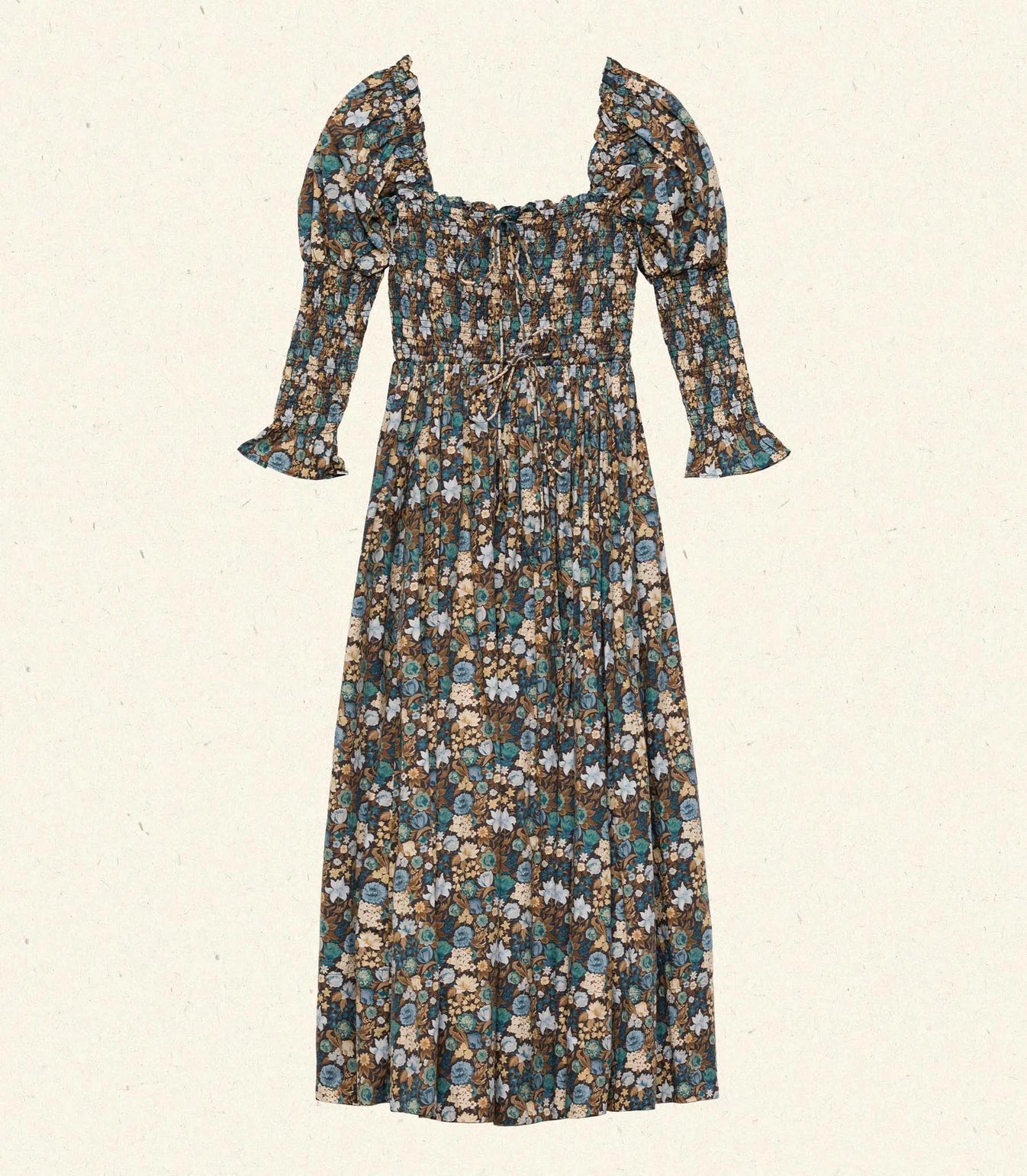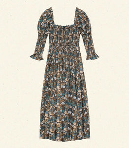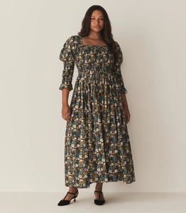 Expertly crafted from 100% organic cotton poplin, the Bijou Dress boasts a chic square neckline with a fixed tie and delicate puffed Juliet sleeves. The smocked bodice, complete with an adjustable waist tie, accentuates your figure as the A-line skirt cascades gracefully down to your ankles. A must-have addition to your wardrobe.