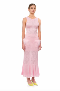 Elevate your style with the Champagne Rose Knit Dress in Pink! This beautiful dress features a round neck, feather details, and a figure-flattering design. Create a fabulous feminine look that is perfect for any occasion, day or night. Dress it up with heels, or keep it casual with sandals or sneakers. Stand out and feel confident in this chic dress!