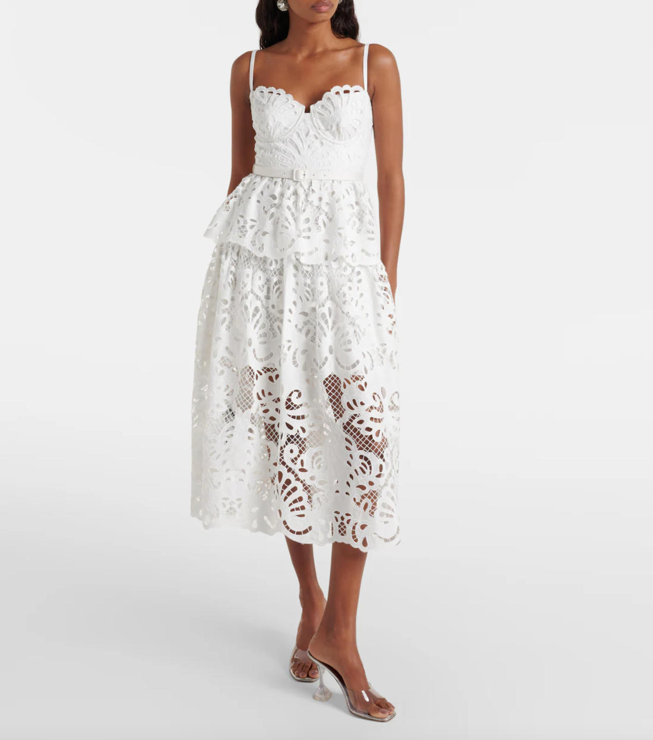 Elevate your style with the Cotton Lace Midi Dress. This elegant dress features intricate lace details and a midi length, perfect for any occasion. Crafted from soft cotton, it offers both comfort and sophistication. Make a statement in this timeless piece.