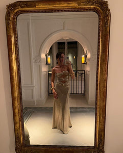 Elevate your wardrobe with the Cutout Off-shoulder Maxi Dress. This bohemian-inspired piece features intricate cut-out detailing and oversized embellishments, adding a touch of luxury to your day-to-night look. Made with traditional designs and techniques, this dress exudes an air of sophistication and exclusivity.