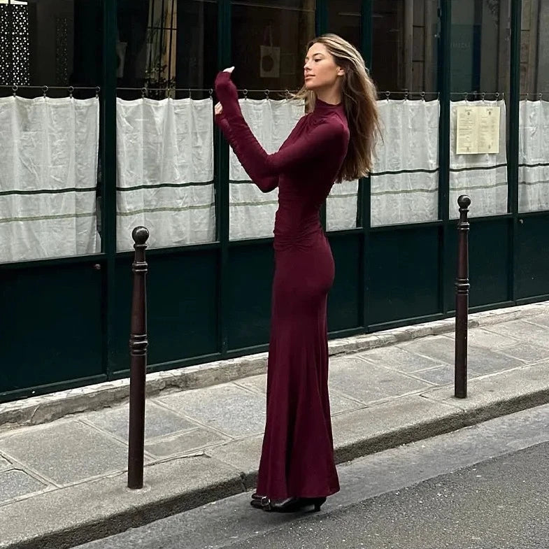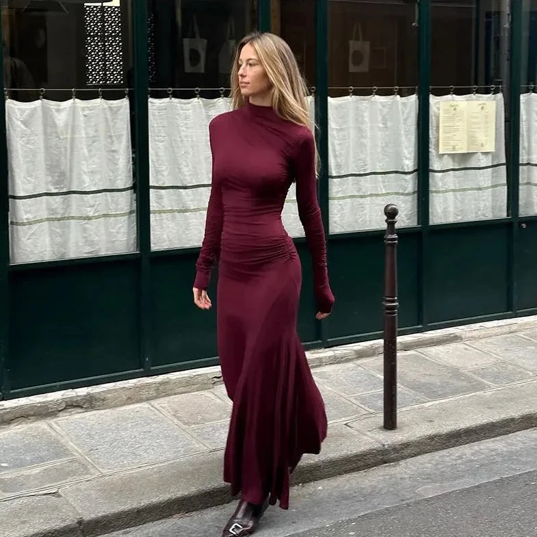 Introducing the Dress Elani, a stunning addition to your wardrobe. This solid dress features a half high collar and long sleeves, creating an elegant and chic look that will make you stand out. Crafted with high-quality materials, it is perfect for any occasion. Elevate your style with Dress Elani.