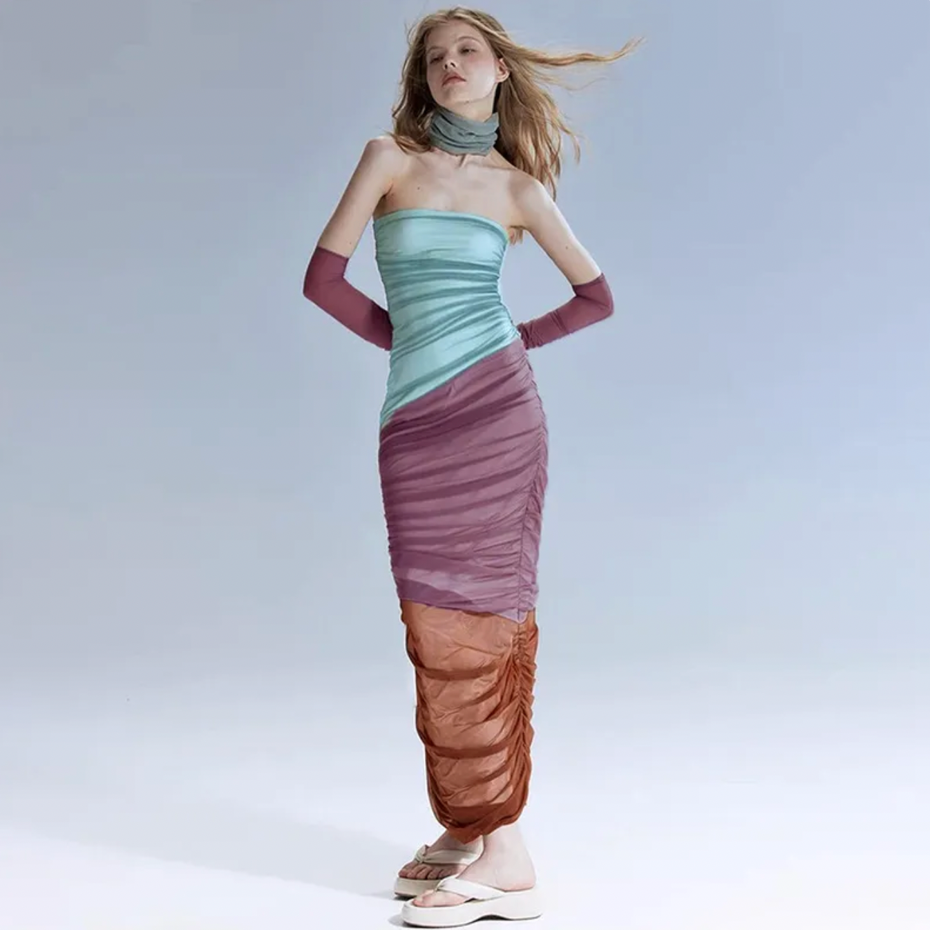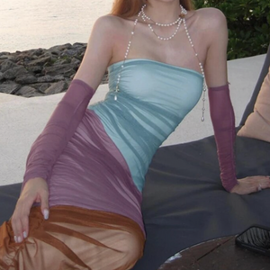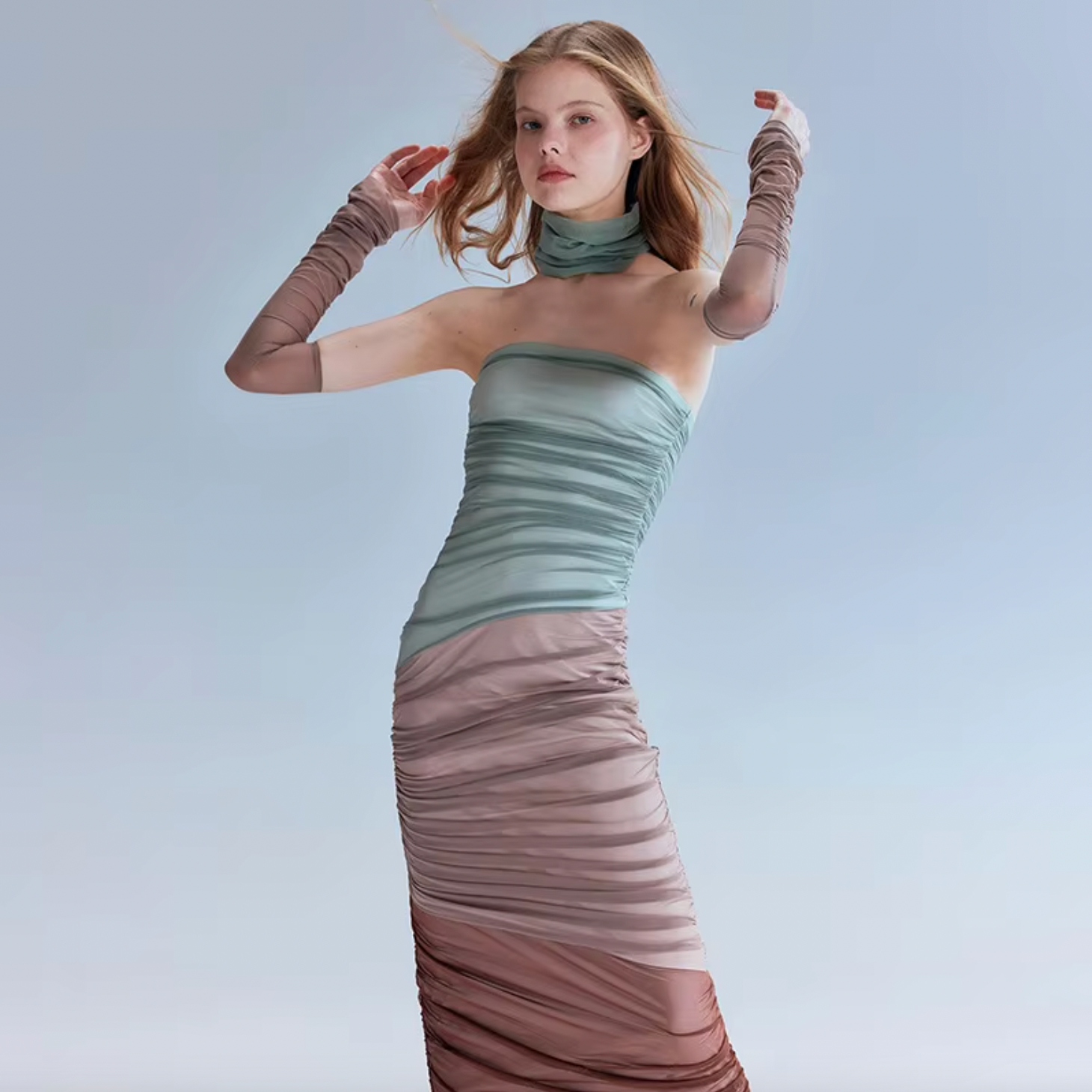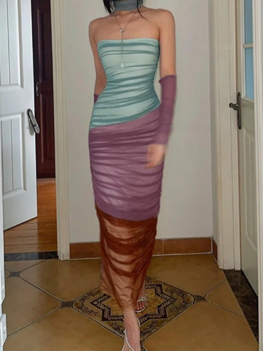 Upgrade your wardrobe with Dress Elianne. Designed with a unique mesh one shoulder and long sleeves, this dress will make you stand out. Its tight stitching accentuates your curves, giving you a hot and confident look. Stay stylish and elegant with this must-have dress.