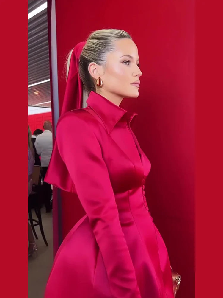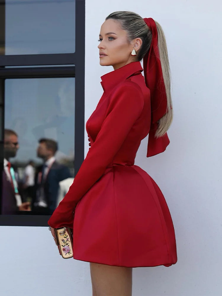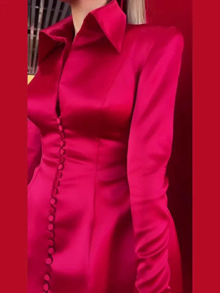 Dress Elisa is a chic and stylish addition to your wardrobe. With a flattering A-line shape, long sleeves, and a lapel collar, this dress exudes confidence and elegance. Perfect for fall and winter, it will elevate any look and make you feel like a high street fashion icon.
