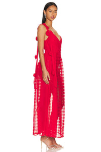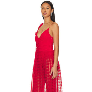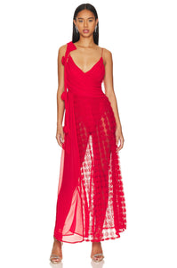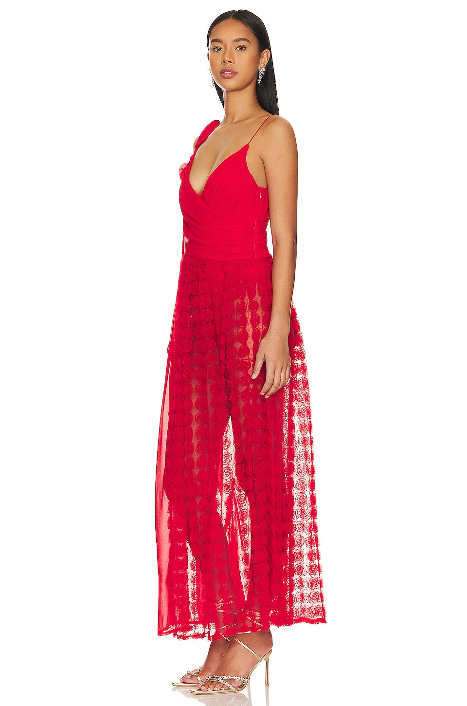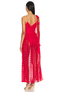 Transform any occasion into a special one with Dress Hannah. The gathered chiffon front and hand-tacked rosettes add delicate details and the flowy chiffon skirt with a 3D rose dot panel offers a unique touch. The built-in stretch satin bodysuit provides comfort, while the invisible zip closure ensures a perfect fit. Look elegant and effortless with the shoulder ties.
