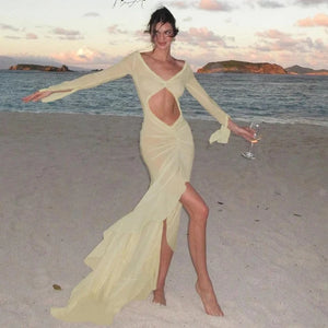 Transform your wardrobe with the captivating Dress Hilma. This sheer long dress boasts a sexy see-through design and elegant long sleeves, adding a touch of allure and sophistication to any occasion. Embrace your inner confidence and make a statement with this stunning gown.
