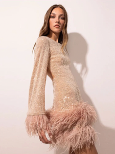 Get ready to sparkle and shine with the Dress Sheila! This stunning dress features sequined fringes that will make you stand out from the crowd. The backless design adds a touch of glamour, while the long sleeve and slim fit ensure a flattering silhouette. Perfect for any occasion, this dress will make you feel confident and beautiful.