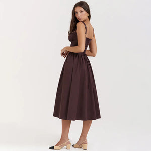 Experience the height of fashion with Dress Tatiana! This trendy midi dress boasts a flattering spaghetti strap design and a stunning brown color that will turn heads. Its long, flowing silhouette adds elegance to any outfit, making it the perfect choice for any occasion. Become a trendsetter with Dress Tatiana!
