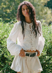 Get ready to turn heads with the Elke Top! With intricate soutache embroidery and a button front design, this cropped top adds a touch of elegance to any outfit. Made with 100% cotton, it's not only stylish but also comfortable. Elevate your wardrobe with the Elke Top today!