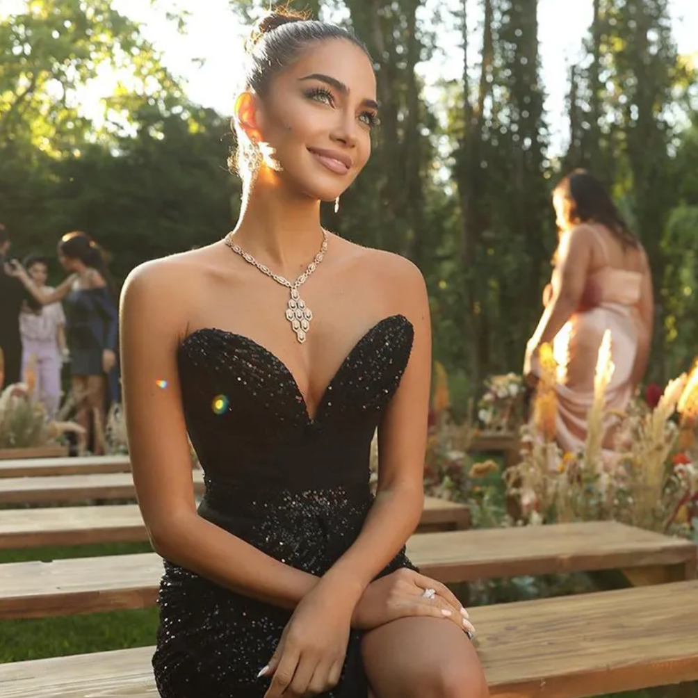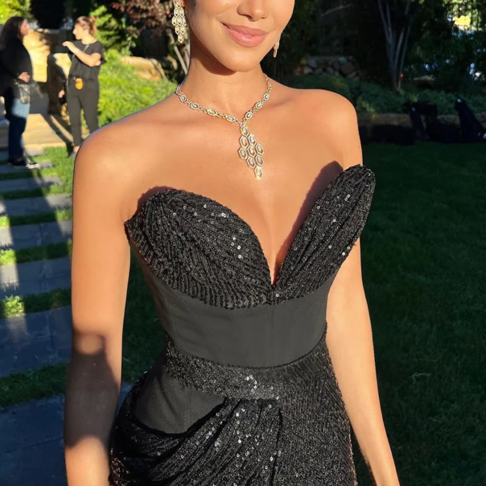 Expertly crafted for the modern woman, the Emaretta Dress is the epitome of chic and sexy fashion. Featuring a stunning black color and elegant sequin detailing, this dress set is perfect for any party or special occasion. The bandage cropped top adds a touch of edginess, while the long length adds an element of sophistication. Elevate your wardrobe with this must-have dress set.