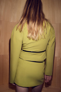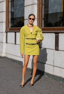 Transform your style with Ensemble Aubrie. This fashionable duo includes a belted, long-sleeved coat and side zip mini skirt, creating a sophisticated and versatile look. Perfect for any occasion, this set will elevate your fashion game to new heights. Make a statement and indulge in luxury today!