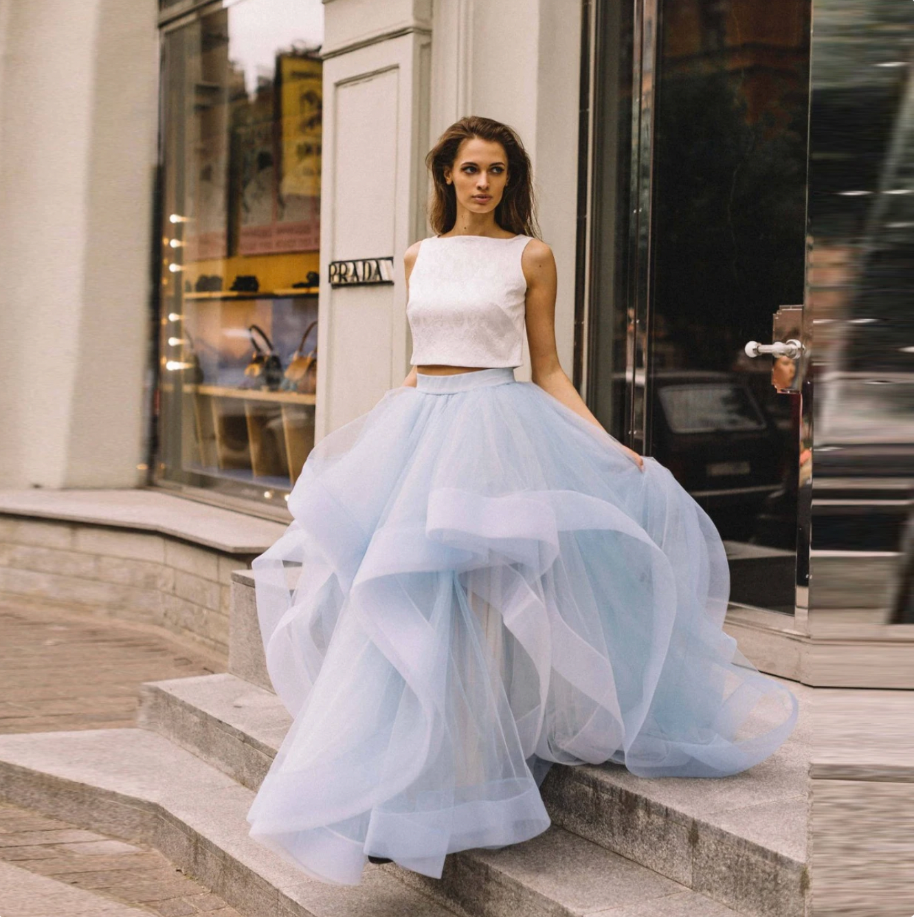 Make a lasting impression in the Ensemble Deanne maxi skirt. Crafted from layers of soft baby blue fabric, this skirt moves effortlessly while bringing a touch of elegance to any occasion. Complete your look with the stylish ruffle and lush party design. Move confidently with the perfect fit of this fashionable maxi skirt.