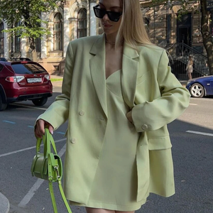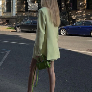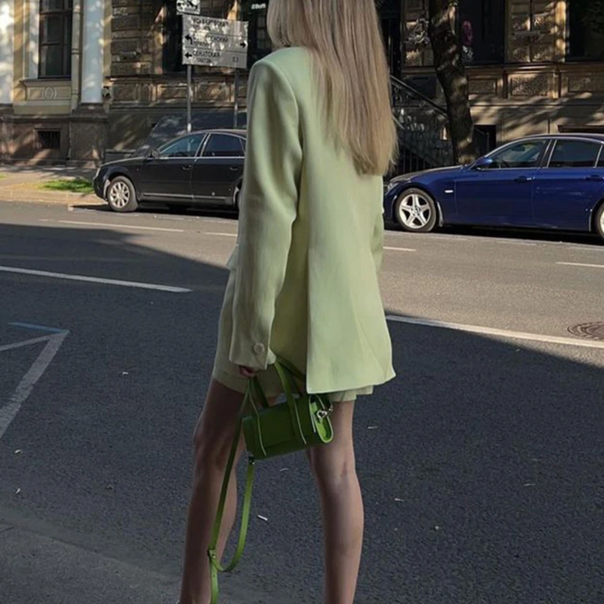 "The Ensemble Junna is a perfect combination of style and functionality. Crafted with a loose, green design, this 2 piece set is ideal for any office setting. The elegant long sleeve blazer pairs perfectly with the sleeveless mini dress, offering a versatile and sophisticated outfit for any professional woman. Dress to impress with Ensemble Junna."