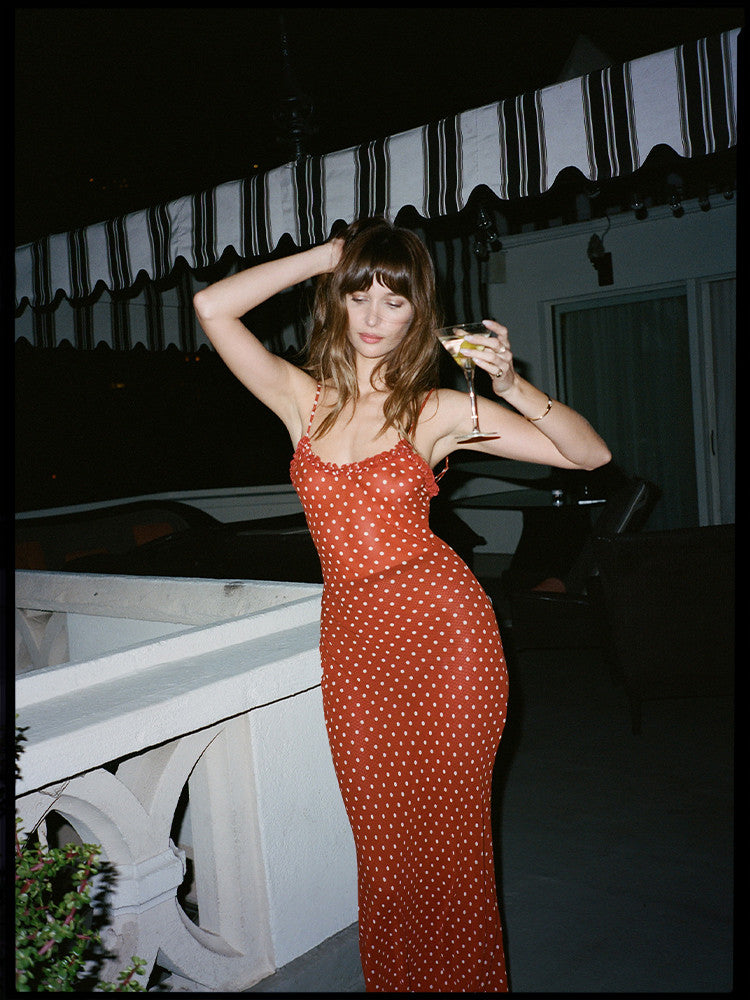 Indulge in the sheer elegance and playful sensuality of the Esmé Dress. Inspired by '70s French boudoir chic, this slip-on piece features delicate ruffle trim at the neckline for effortless sophistication. For a daring look, pair with your favorite lingerie, or opt for more coverage with a nude silk Under Slip. Elevate your style with the Esmé Dress.