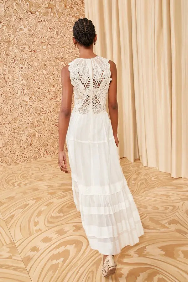 Indulge in the romantic and feminine elegance of the Fleur Lace-Appliquéd Dress. Exquisitely designed with intricate lace appliqués, this dress will make you feel like a goddess on any occasion. The perfect combination of luxury and style, this dress is a must-have for the modern woman who wants to make a statement.