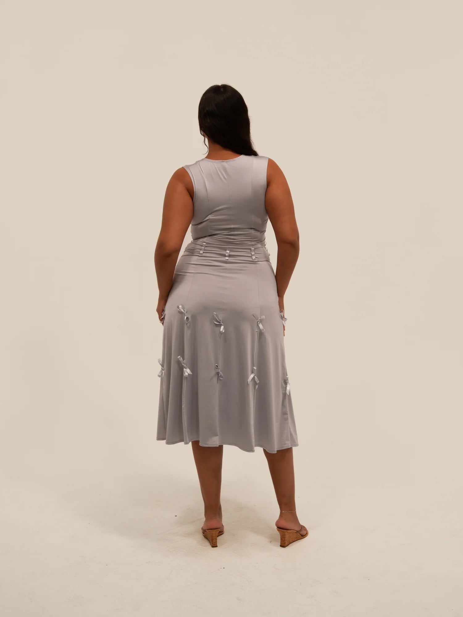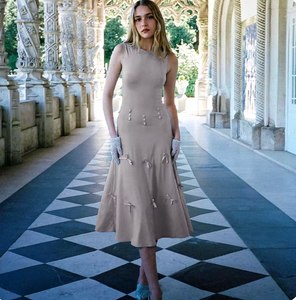 Indulge in luxury and sophistication with the Heiress Midi Dress. The sleeveless design and high waist create a flattering silhouette, while the delicate bow adds a touch of femininity. Crafted with high-quality materials, this dress is versatile for any occasion and exudes confidence and style. Available in a variety of solid colors, it's a must-have for any fashion-forward wardrobe.