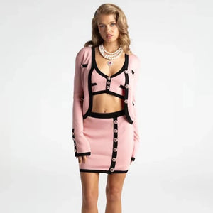 Experience luxurious comfort and timeless style with our Knit Set Matilda. This three-piece set includes a versatile knit cardigan, vest, and half top for effortless layering. Crafted with precision and attention to detail, this set is perfect for any occasion. Elevate your wardrobe with this must-have set.