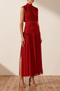 Expertly crafted and designed, the Lèonie High Neck Midi Dress is the epitome of stylish elegance. Made from a lightweight semi-sheer chiffon, it offers a flowy silhouette and soft texture for unmatched comfort. Perfect for both daytime and evening events, it's a versatile piece that can be dressed up or down for any occasion.