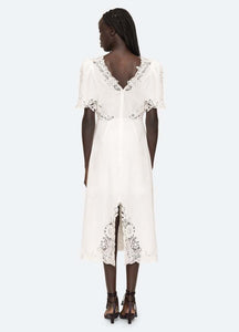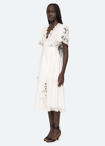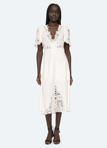 Make a statement with the Marcella Dress! This elegant dress features a flattering v-neckline and intricate lace detailing that exudes sophistication. With short sleeves, you can stay cool and comfortable while looking glamorous. Perfect for any special occasion, this dress is sure to turn heads and make you feel confident and beautiful!