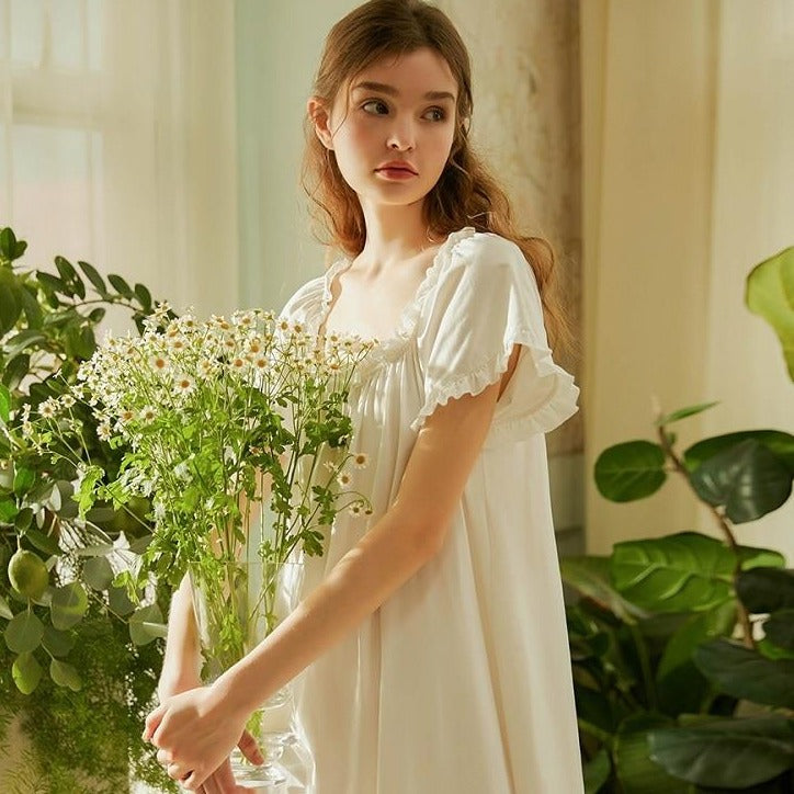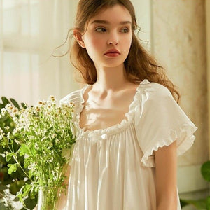 Slip into a night of relaxation and royal dreams with this Nightgown Alissa! With its fit-for-a-princess design and all-white color, you'd look like royalty no matter where you go. Sweet dreams!
