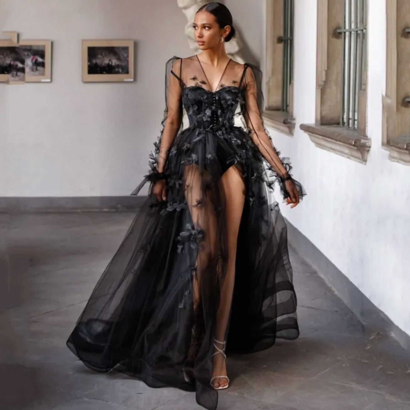 Can't decide between romance and sassy? With the Nightgown Amandine, you don't have to! This handmade flower embroidered dress combines a wedding-ready silhouette with a "come hither" side high split. It's all the sophistication of a classic with all the attitude of after dark. So slip into this sexy and strikingly unique nightgown and you'll feel both ravishing and ready to rock!