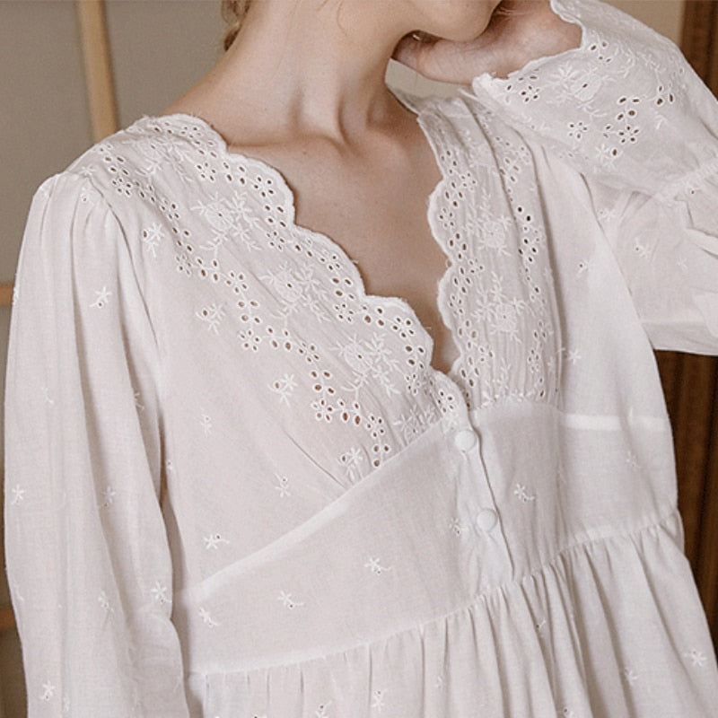 Indulge in luxurious elegance with our Nightgown Anastasia. This delicate nightgown embodies French vintage style, giving you a sense of timeless beauty and sophistication. Made with utmost attention to detail, it is the perfect piece to add to your collection of premium garments.