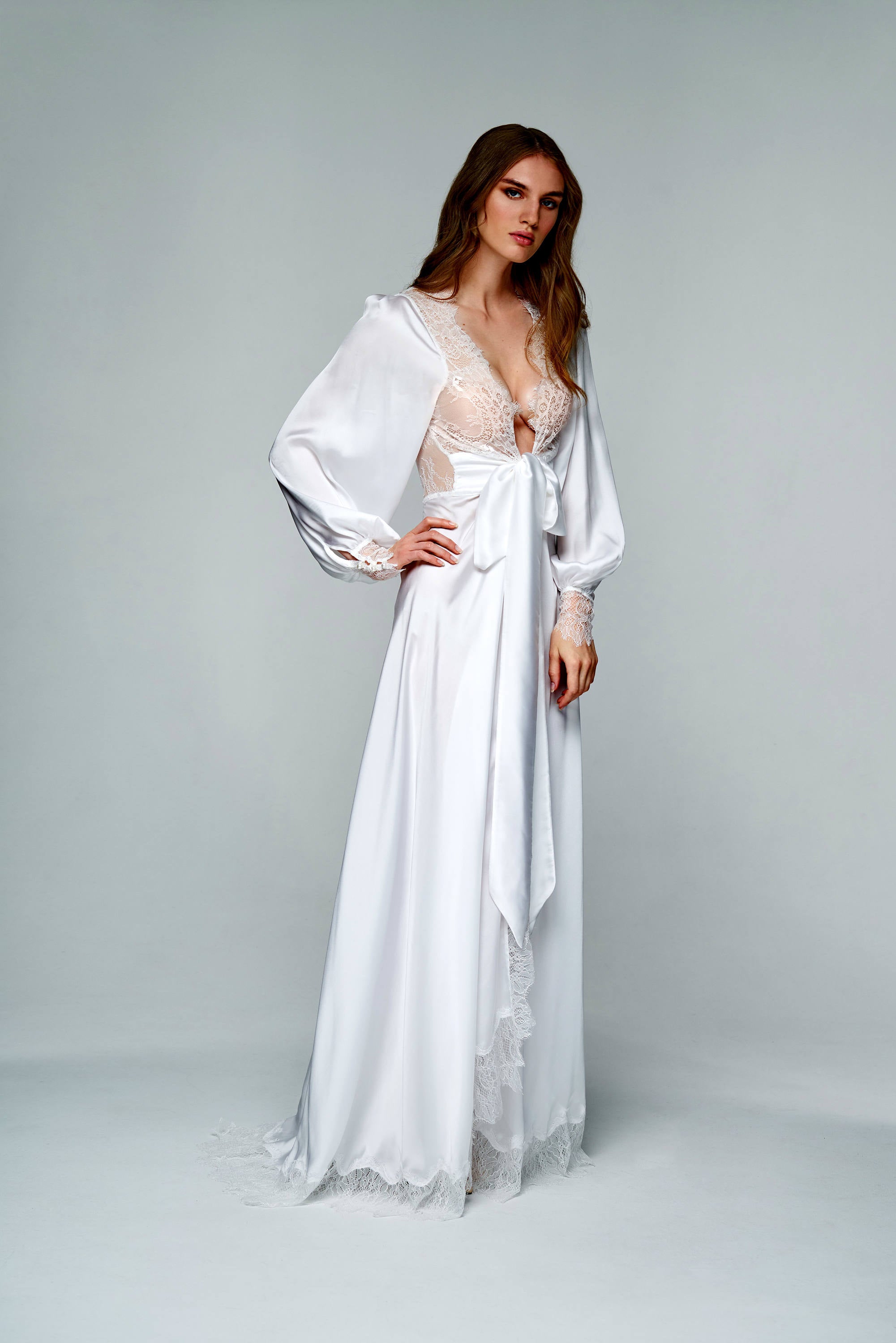 Experience a touch of French elegance with the Nightgown Victoire. Made from luxurious silk, this beautiful nightgown exudes chic and timeless style. Perfect for a quiet evening at home or a romantic getaway, it's the ultimate blend of comfort and sophistication. Prepare to feel like a true Queen of the Night!