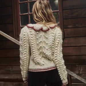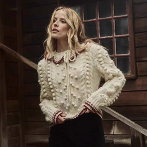 Indulge in the luxurious warmth and elegance of our Pull Valentina. This ball wool blended sweater features a heavy crochet lace collar that adds a touch of sophistication to any outfit. Perfect for chilly days or layering with your favorite pieces, this sweater is a must-have for any fashion-forward wardrobe.