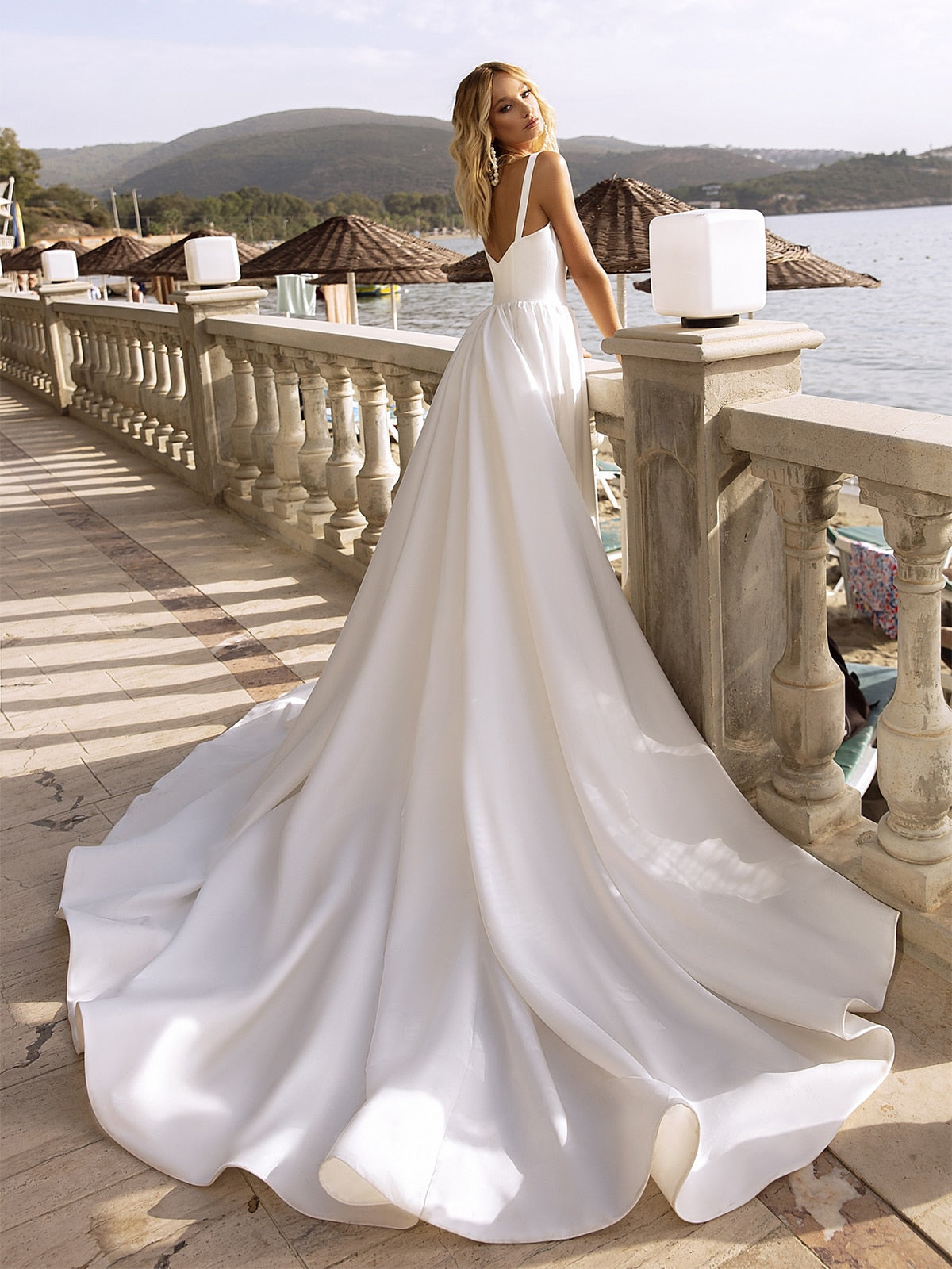 Indulge in luxury with the white satin Robe Adaya. Perfect for weddings or special events, this bridal gown will make you feel elegant and glamorous. The silky fabric and flowing design will make you the center of attention on your special day.