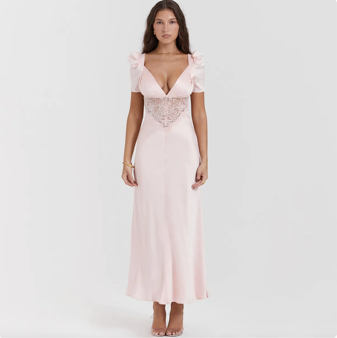 Beautify your special day with the Robe Adeliza. This gorgeous lace dress captures the beauty of a classic wedding look. The perfect combination of long maxi, short sleeve, and elegant design will make you shine from the aisle to the reception. Look and feel your best in the Robe Adeliza.