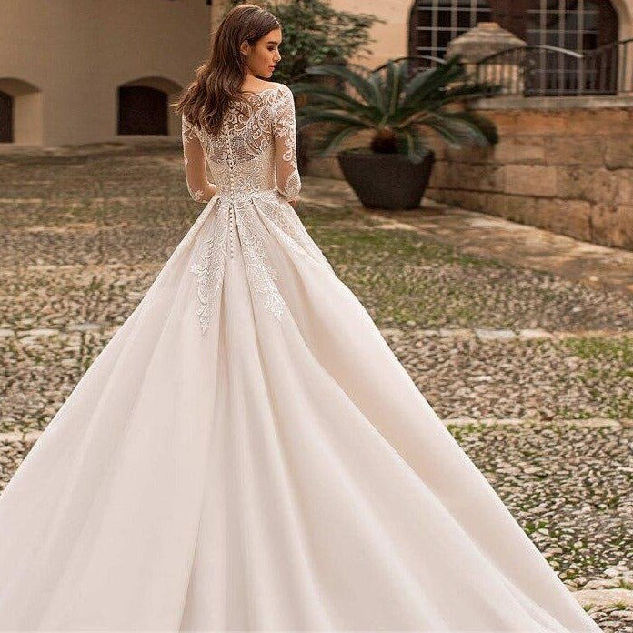 Indulge in a truly elegant experience with our Robe Alaiya. This chic wedding gown is crafted from delicate lace, adding a touch of sophistication to your special day. The intricate details of the lace provide a timeless charm, perfect for any bride looking for a classic and refined look. Elevate your wedding ensemble with our Robe Alaiya.