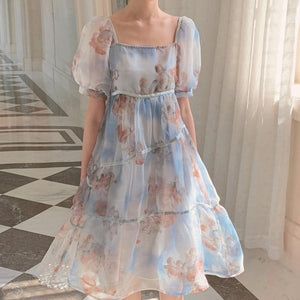Unlock your inner Angel with the Robe Angela! This stylish French fairy dress with its elegant chiffon midi design, puff sleeves, and square collar will have your style soaring. Vintage angel print and summer vibes make this dress the perfect piece for your wardrobe, and you’ll be turning heads in no time! Take the plunge and shine with Robe Angela.