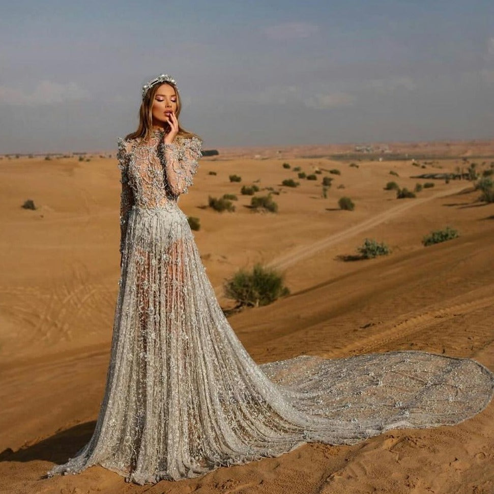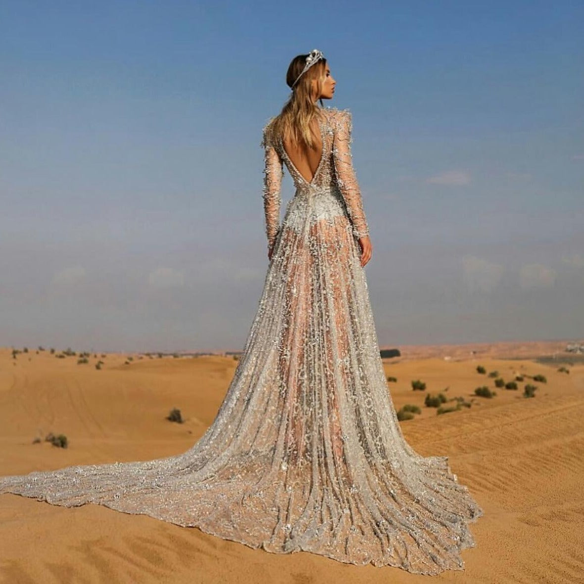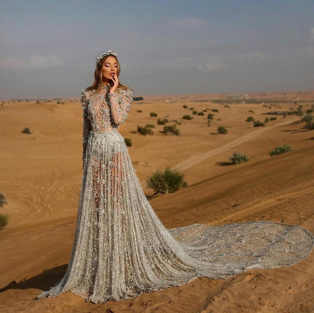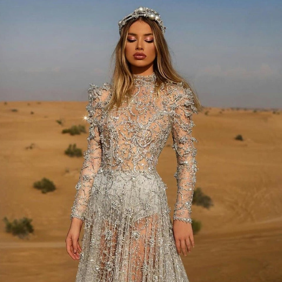Our Robe Ashlyn is the epitome of desert chic. With sparkling embroidered details and a flattering mermaid silhouette, this elegant gown exudes luxury. Indulge in the beauty and grace of this one-of-a-kind dress, perfect for any special occasion. Elevate your style with Robe Ashlyn.