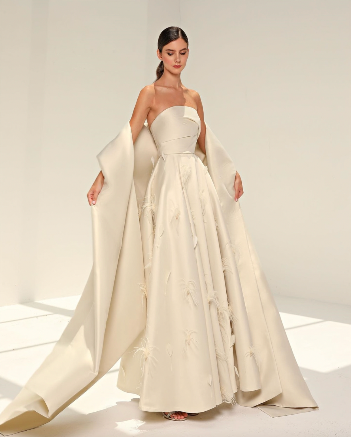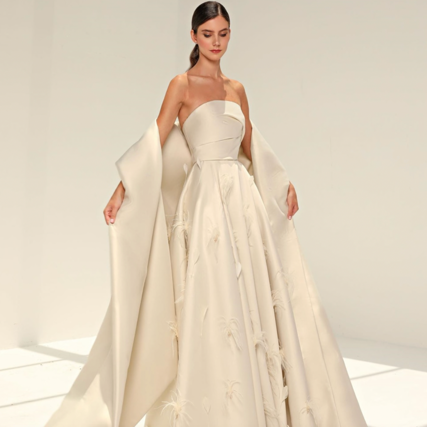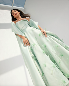 Look amazing on your special night in this elegant strapless A-line floor length satin gown. With a beautiful ruched stole, this formal evening gown will turn heads and make you feel like royalty.