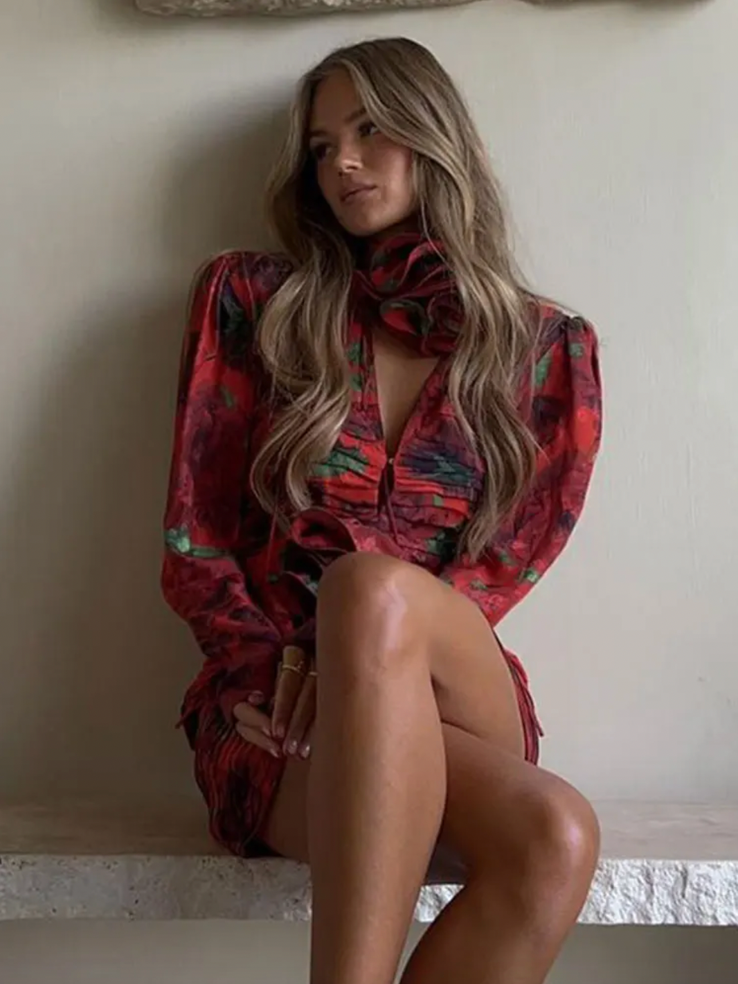 Introducing the Robe Bruna - a summer must-have for any fashion-forward woman. This elegant dress features a vintage floral print, cut-out design, and long sleeves for a timeless retro look. The tie-dye pattern adds a touch of playfulness, perfect for a day out or evening party. Stay stylish and comfortable all season long.