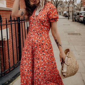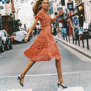 The Robe Carmelina is a casual midi dress, inspired by French Parisian style. With its elegant design, this dress is perfect for any occasion. Elevate your wardrobe with this timeless piece that exudes sophistication.
