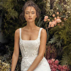 Indulge in the luxurious elegance of the Robe Cerrise. A stunning white bridal gown adorned with chic flowers, this wedding dress radiates sophistication and style. Elevate your special day with this exquisite piece that is sure to make you feel like a true bride.