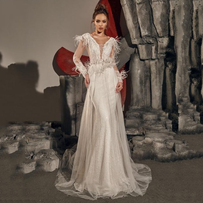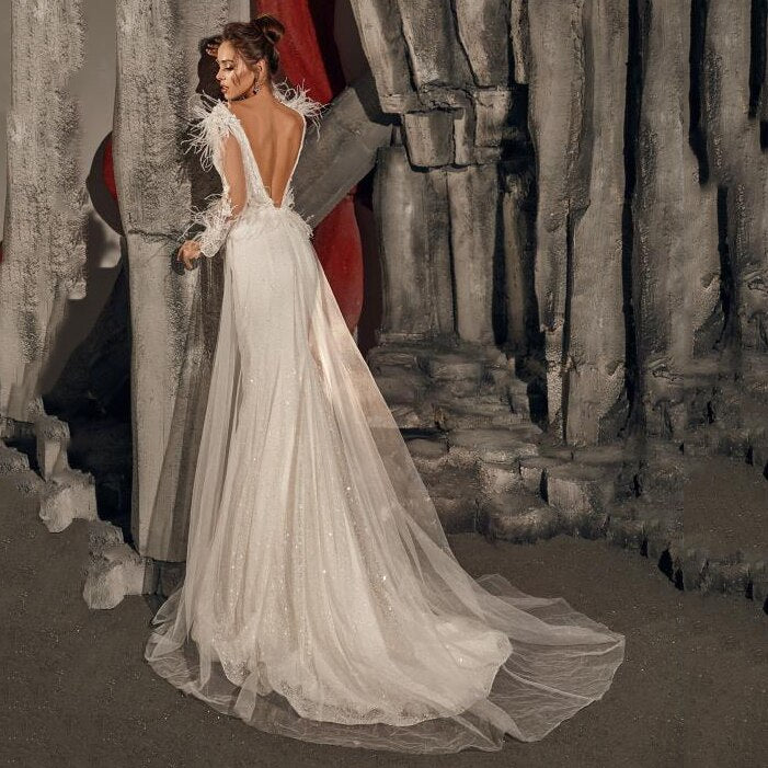 Transform into a blushing bride with our ivory Robe Chamelea bridal gown. Feel confident and elegant as you walk down the aisle in this exquisite, timeless piece. Perfect for creating unforgettable memories on your special day.