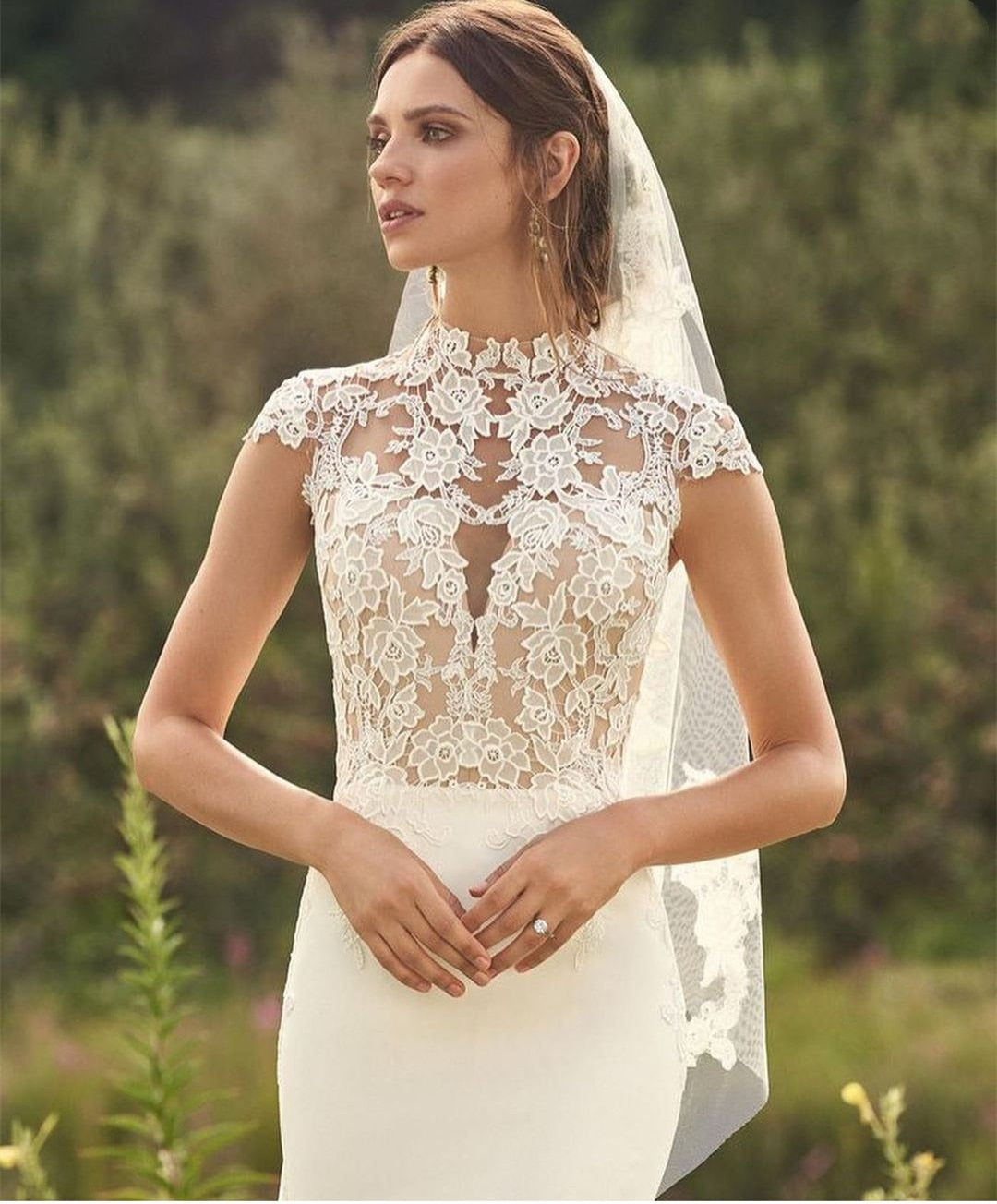 Elevate your wedding look with the elegant Robe Clementia. Its exquisite white embroidered gown and delicate lace details add a touch of romance and sophistication. Made for the modern bride seeking timeless beauty.