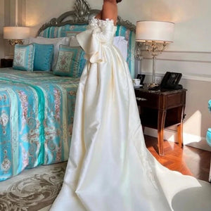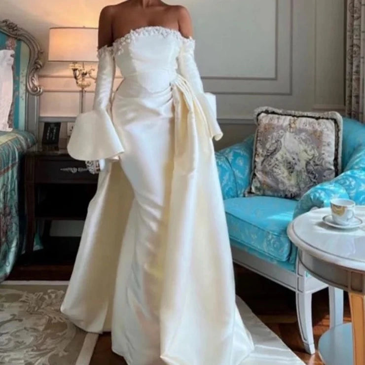 Indulge in luxury with the Robe Darianka. Handmade with high-quality satin, this elegant gown features puffy sleeves and a tailored fit for a regal and sophisticated look. Exude confidence and style with this one-of-a-kind dress.