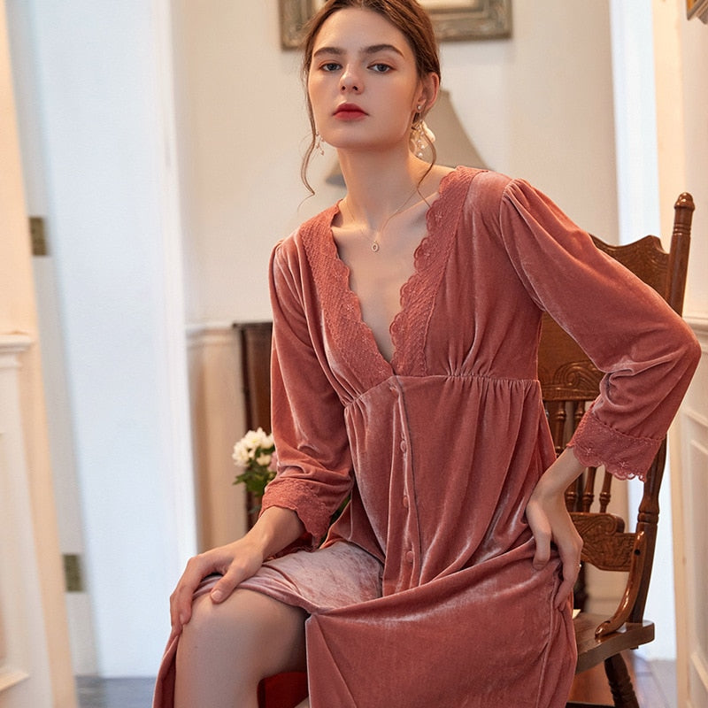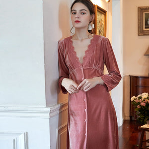 Expertly crafted with a luxurious velvet, the Alessa Robe de Nuit is the ultimate addition to your sleep collection. With a loose and comfortable fit, this nightgown provides a sexy and intimate feel while keeping you stylish and cozy. Perfect for lounging or sleeping, elevate your at-home wardrobe with this stunning piece.