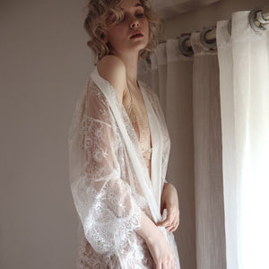 Made with delicate French lace, the Aila night robe adds a touch of elegance to your bedtime routine. Its transparent design allows for a sexy yet effortless look. Indulge in comfort and sophistication with this luxurious piece.