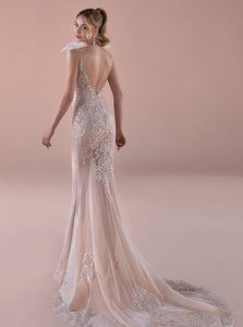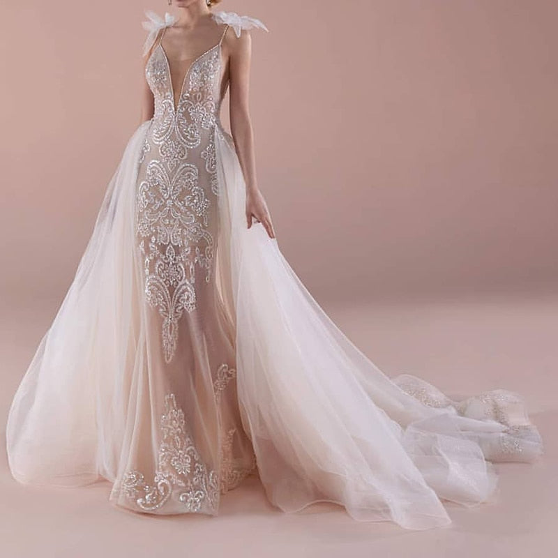 The Robe Deedra is a stunning addition to any wardrobe. Its elegant mermaid design and crisp white fabric exude sophistication and grace. Perfect for formal events, this gown is sure to make a lasting impression. Upgrade your style with the Robe Deedra.