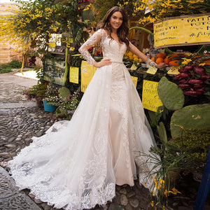 Indulge in pure elegance with our Robe Desyree, a luxurious wedding gown made with an exquisite ivory fabric. Its stunning train length creates a captivating silhouette, making this dress perfect for any bride's fairy-tale moment. Embrace sophistication on your special day with this timeless piece.