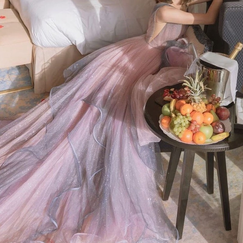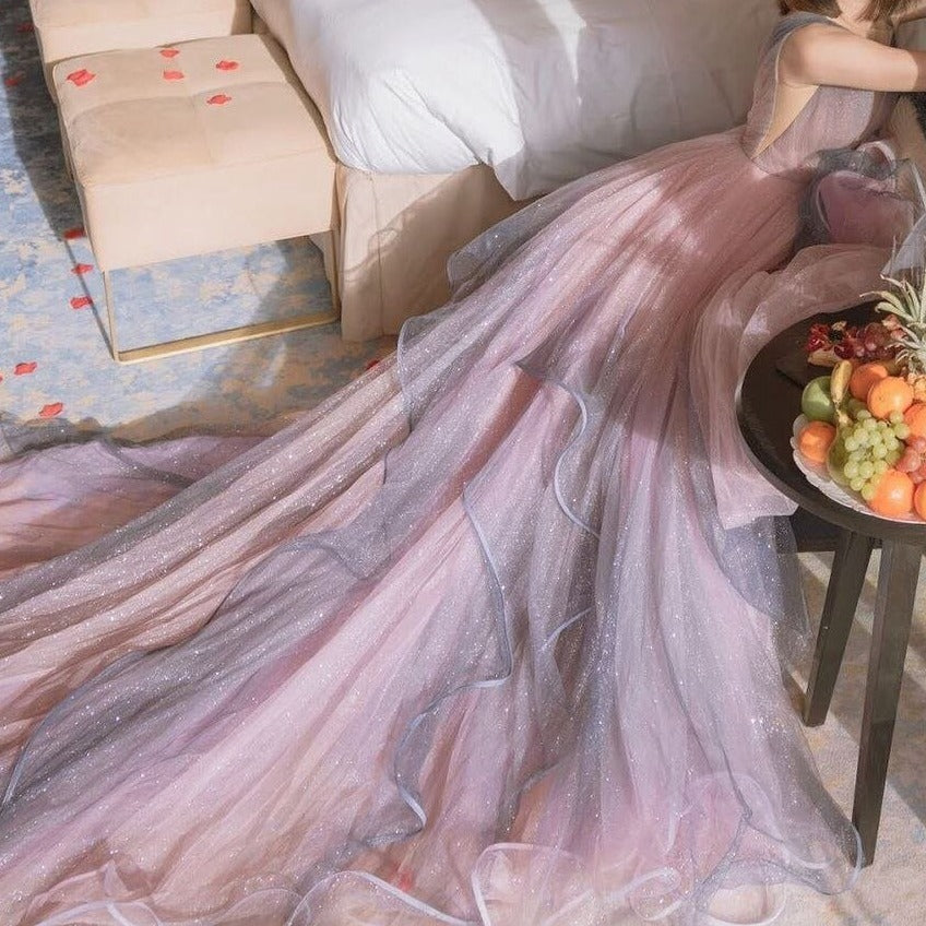 Elevate your style with the stunning Robe Emmelia. This beautiful long fantasy prom dress exudes elegance and sophistication, making you stand out at any event. Made from high-quality materials, it offers comfort and a flattering fit. Perfect for any special occasion, this dress is a must-have for any fashion-forward individual.