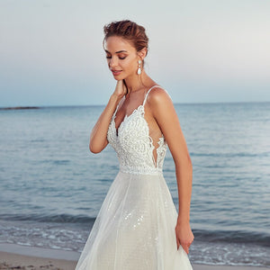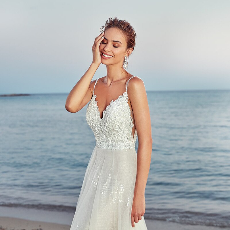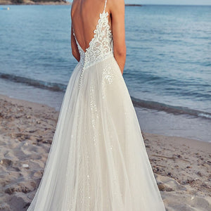 Indulge in luxury and grace with our Robe Emmeline. This elegant white gown is the epitome of chic and the perfect choice for any bridal occasion. Embody sophistication and timeless beauty with its flowing silhouette and intricate details. Elevate your wedding dress game with the Robe Emmeline.
