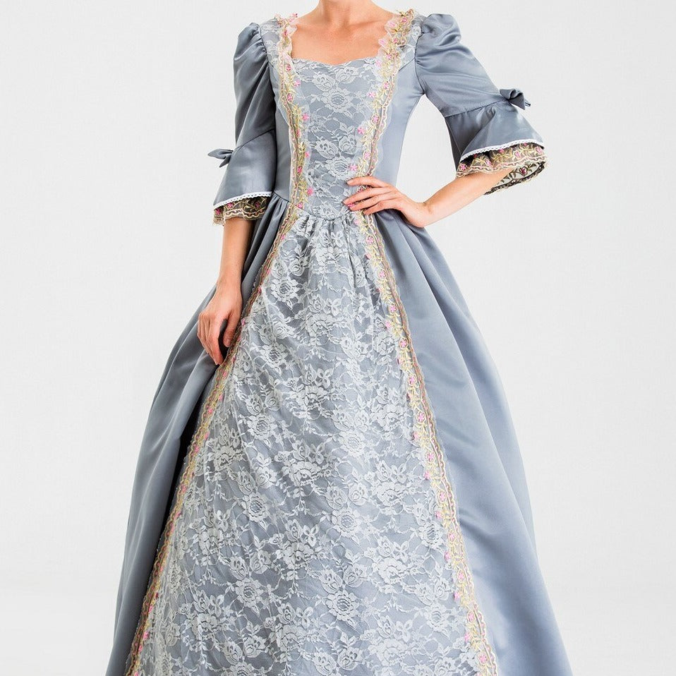 Step back in time with our Robe Felicienne! This regency era gown is an elegant and timeless piece that will transport you to a world of romance and sophistication. Perfect for special occasions and historical events, it's a must-have addition to any wardrobe. Channel your inner Jane Austen and make a statement in this stunning gown. (Mr. Darcy not included.)