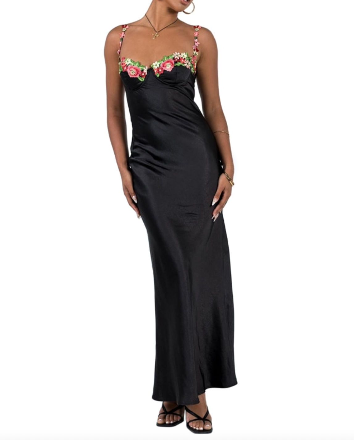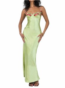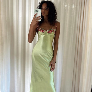 Indulge in pure elegance with our Robe Freya. Made with luxurious satin and featuring a V-neckline, spaghetti straps, and a sleeveless design, this long robe is perfect for any formal occasion. Experience the comfort and sophistication it offers while looking effortlessly chic.