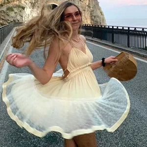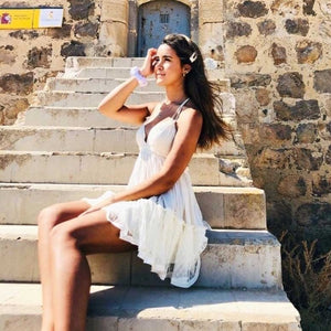 The Robe Galochka is the ultimate summer dress for women. Made with light and breathable cotton, this dress features delicate lace and pleated details. The halter design and backless style adds a touch of femininity, making it the perfect choice for the beach or a summer day out. Its V-neck and bohemian vibe will surely make you stand out from the crowd.