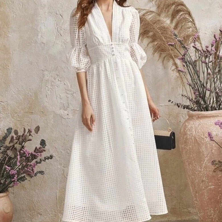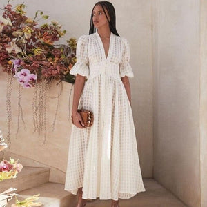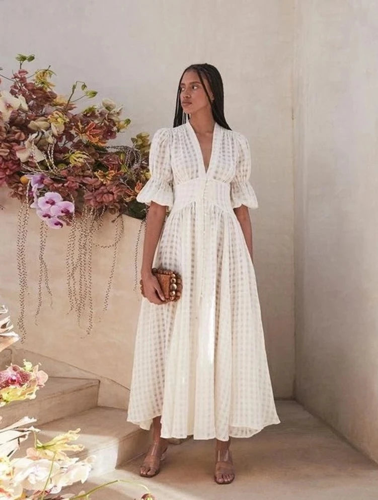 Introducing Robe Gemma - the perfect addition to your wardrobe! This maxi dress in off white gingham linen offers effortless style and comfort. With its lightweight fabric and flattering silhouette, it's the perfect choice for any occasion. Elevate your look and feel confident in this must-have dress.
