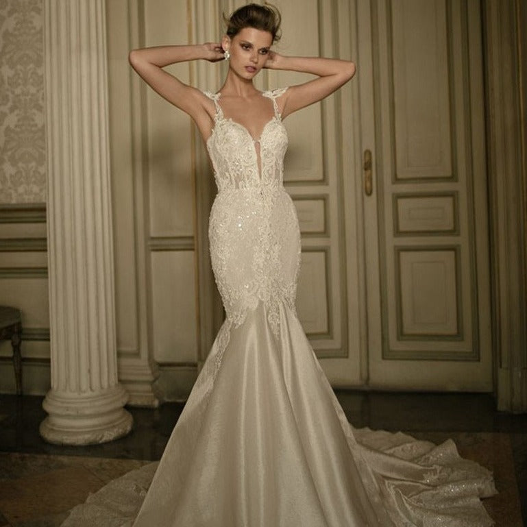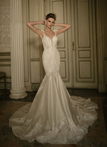 The Robe Ginnette features a beautiful bridal gown with sparkling detail, perfect for any wedding ceremony. With its elegant design, this gown will make you feel like a true princess on your special day.